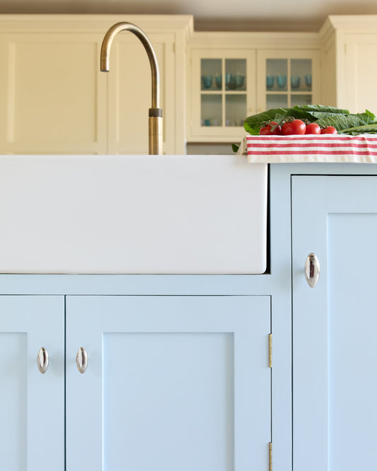 Coloured Knob, Pale Blue, Brass