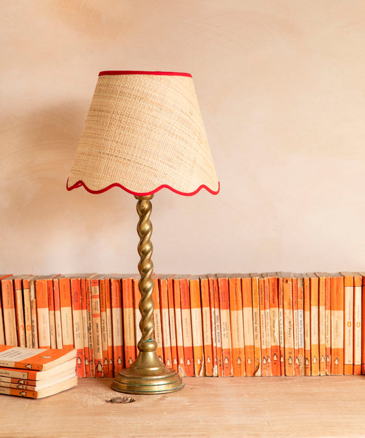 Raffia Scallop Lampshade, Red Trim, Small