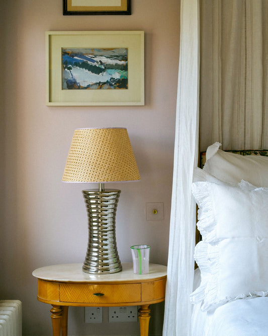 Cane Lampshade, Pink Trim, Large
