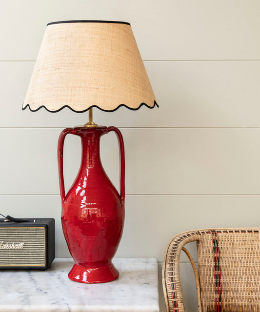 Raffia Scallop Lampshade, Red Trim, Large