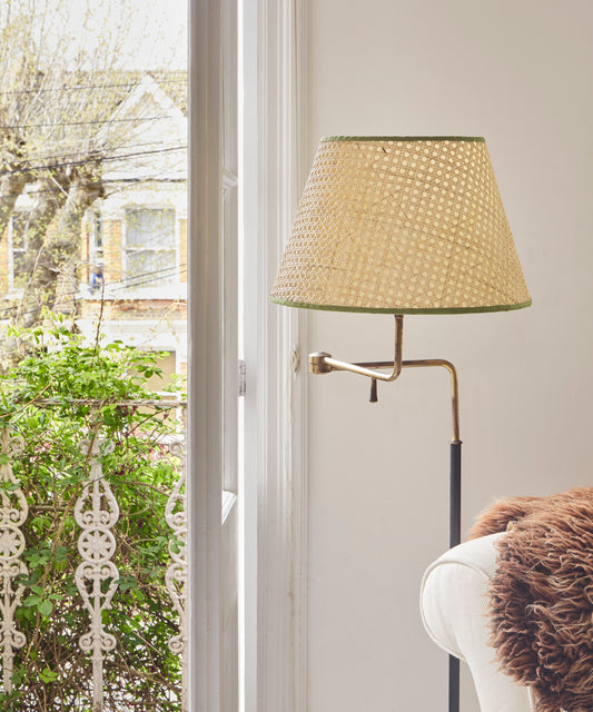 Cane Lampshade, Khaki Trim, Large