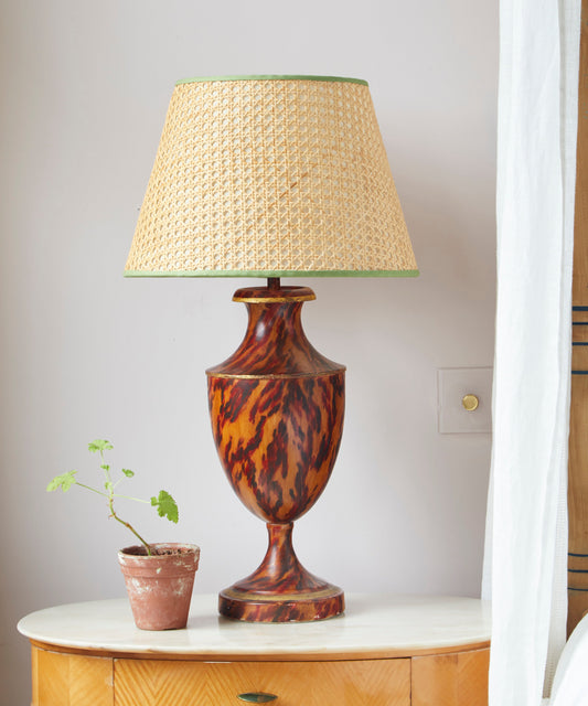 Cane Lampshade, Rust Red Trim, Mini