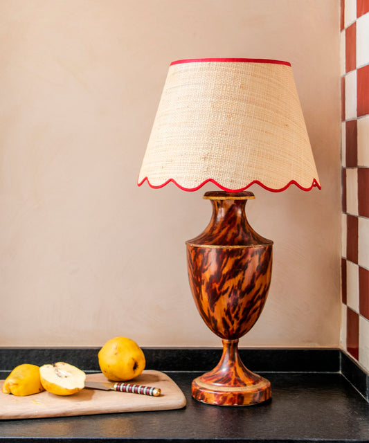 Raffia Scallop Lampshade, Red Trim, Small
