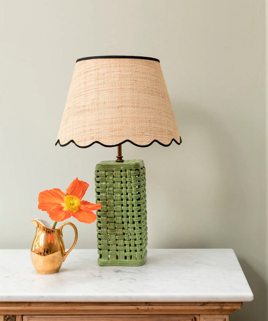 Raffia Scallop Lampshade, Black Trim, Small