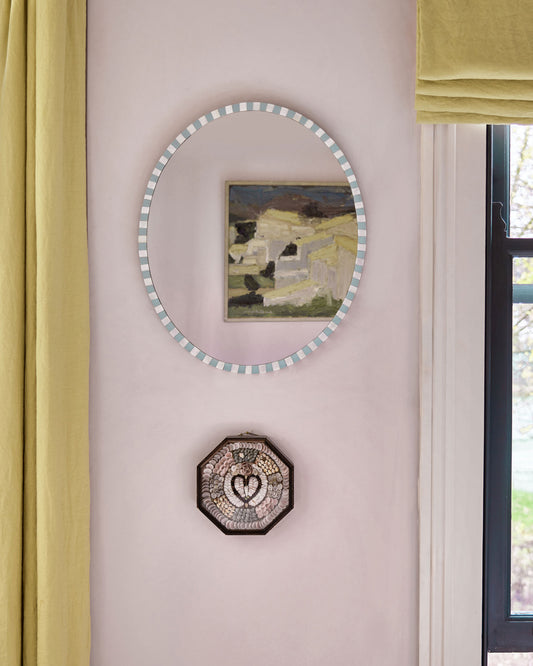 Pearl Oval Mirror, Pale Blue