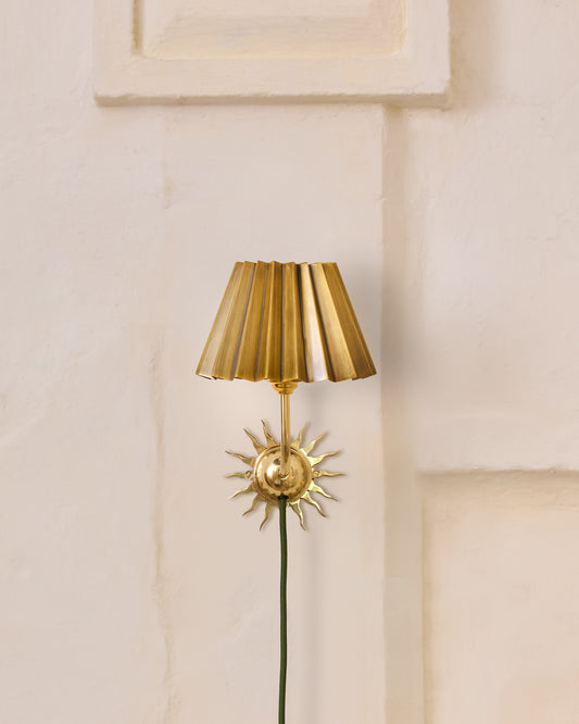 Sunburst Plug In Wall Light, Polished Brass